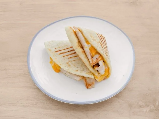Oven roast turkey breast, sharp white cheddar. On Panini
