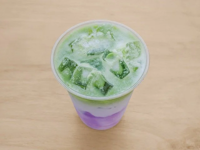 Ceremonial matcha, lavender essence, steamed oat milk, lightly sweet